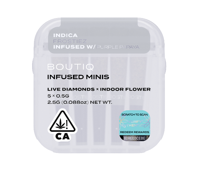 Frostiez x Purple Papaya Cool down and relax with a blend of Frostiez with its crisp, cool minty notes alongside the lush, juicy flavors of Purple Papaya. This all-indica pairing is a delicious escape into relaxation, perfect for ending your day on a sweet note or setting the mood for a peaceful night.